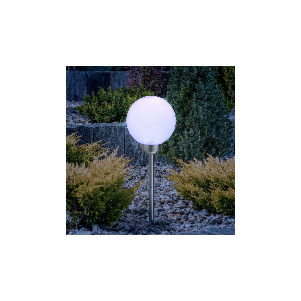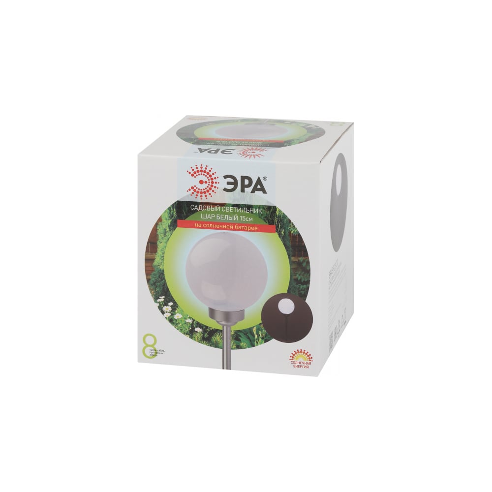 Садовый светильник ЭРА ERASF22-20 Шар белый, на солнечной батарее, 15 см, Б0053374