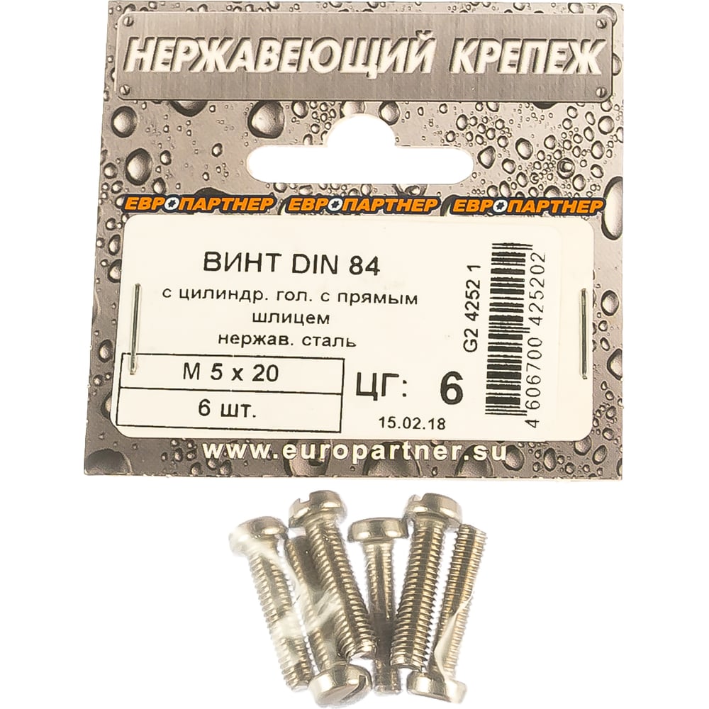 Винт с цилиндрической головкой, с прямым шлицем ЕВРОПАРТНЕР DIN 84 5x20 нержав. сталь 6 шт. G2 4252 1