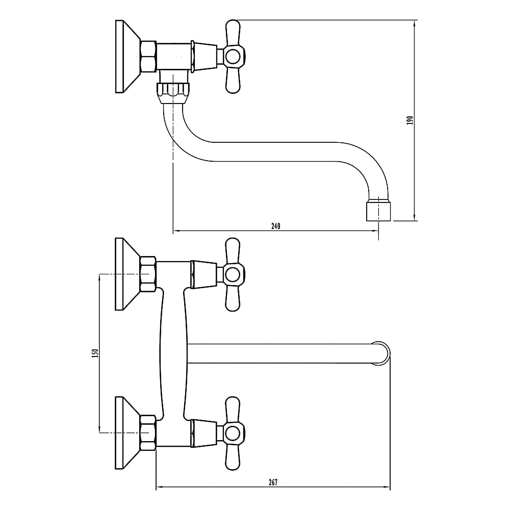 Смеситель для кухни СоюзКран настенный, круглый излив 25 см, керамическийкран-буксы 1/2, хром, цинк SK10-S204 567-064