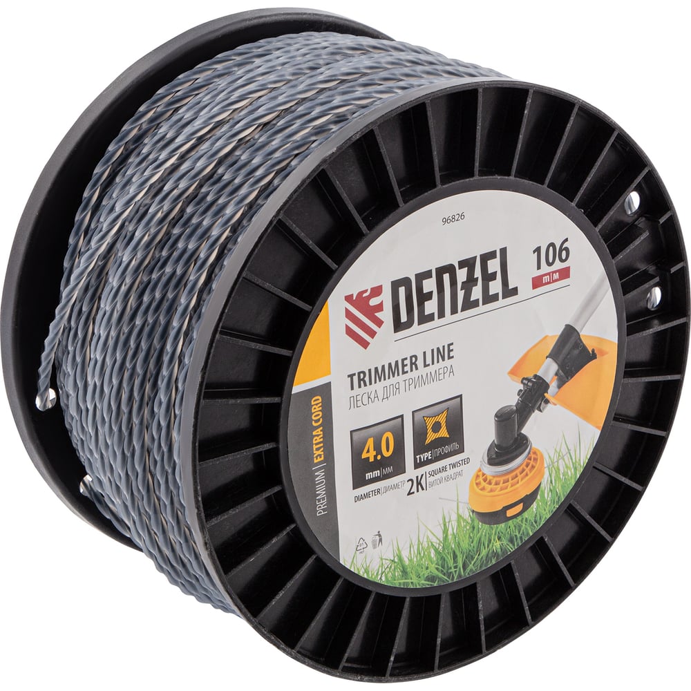 Леска двухкомпонентная EXTRA CORD (4 мм, 106 м, витой квадрат, на DIN катушке) для триммера Denzel 96826