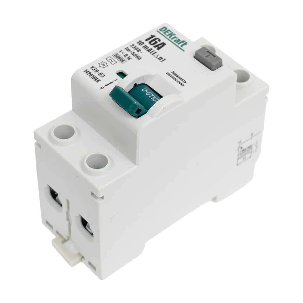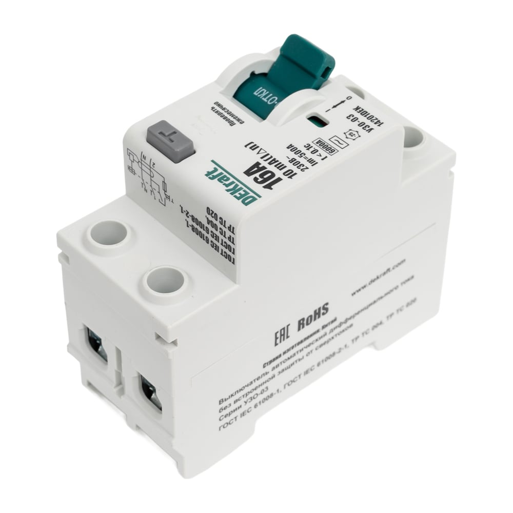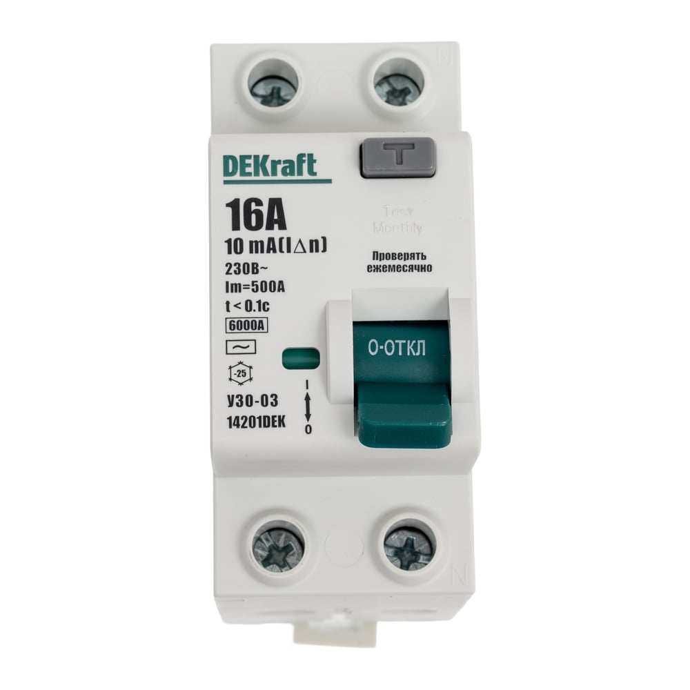 Выключатель дифференциального тока (ВДТ) DEKraft УЗО-03, 2 Р, 16 А, 10 мА, тип AC, 6 кА 14201DEK