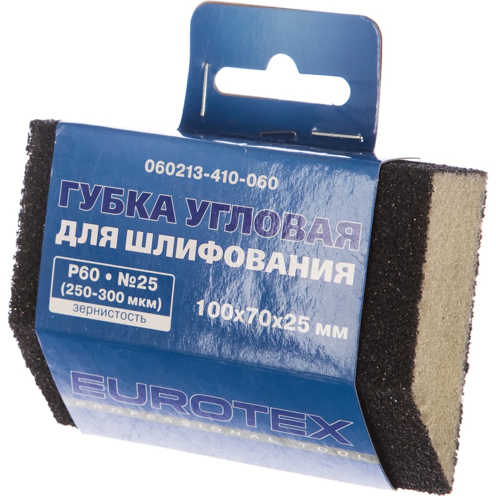 Губка угловая для шлифования средняя жесткость №25 (100x70x25 мм; Р60) EUROTEX 060213-410-060