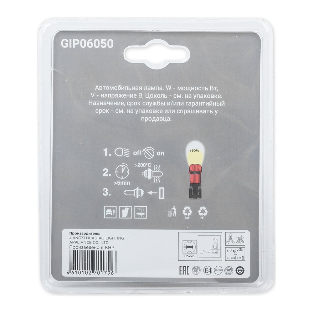 Лампа GANZ 12V H3 55W +50% PK22s 5000K 2 шт. блистер GIP06050