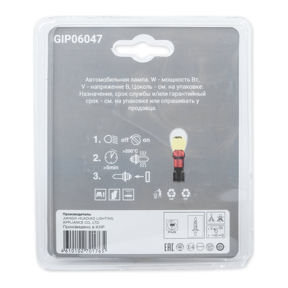 Лампа GANZ 12V H1 55W +50% P14,5s 5000K 2 шт. блистер GIP06047