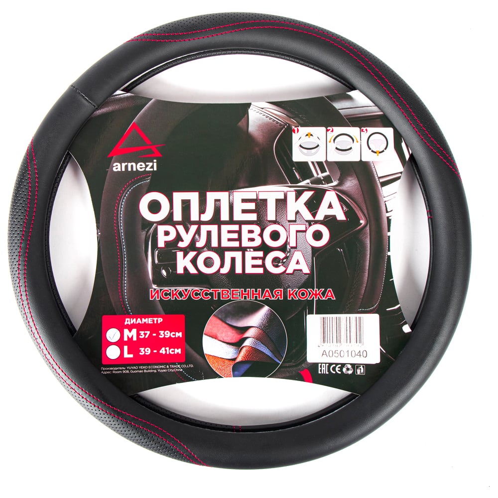 Оплетка на руль Arnezi M, 38 см, искусственная кожа PU, черная, с перфорацией A0501040