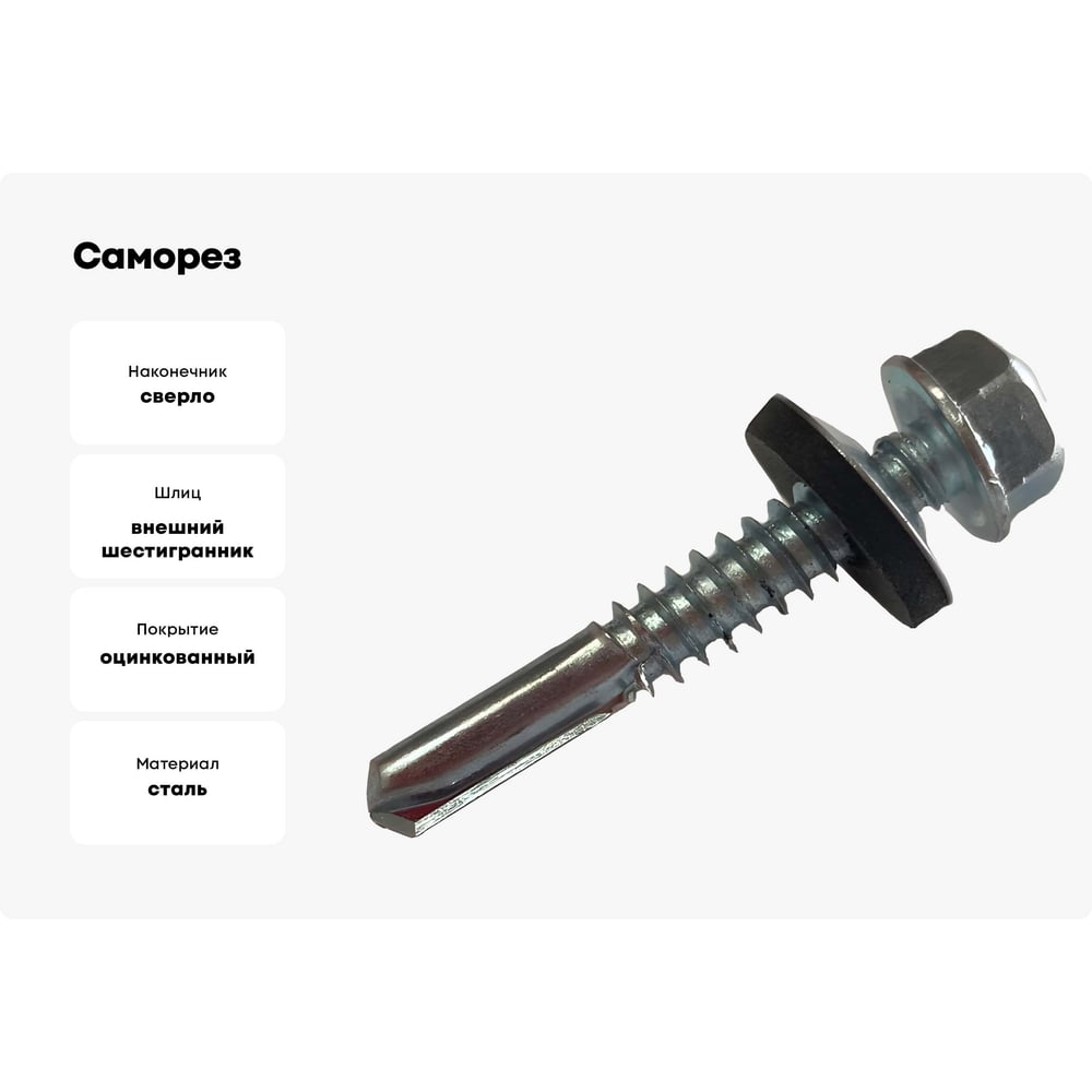 Длина 32 мм DIN нет Тип фасовки шт. Материал сталь Покрытие оцинкованный Диаметр 5.5 мм Назначение для металлических оснований ISO нет ГОСТ нет Наличие пресс-шайбы есть Нержавеющая сталь нет Цвет покрытия белый цинк Форма головки шестигранная Шлиц внешний шестигранник Наконечник сверло Цвет RAL нет Фасовка 250 шт