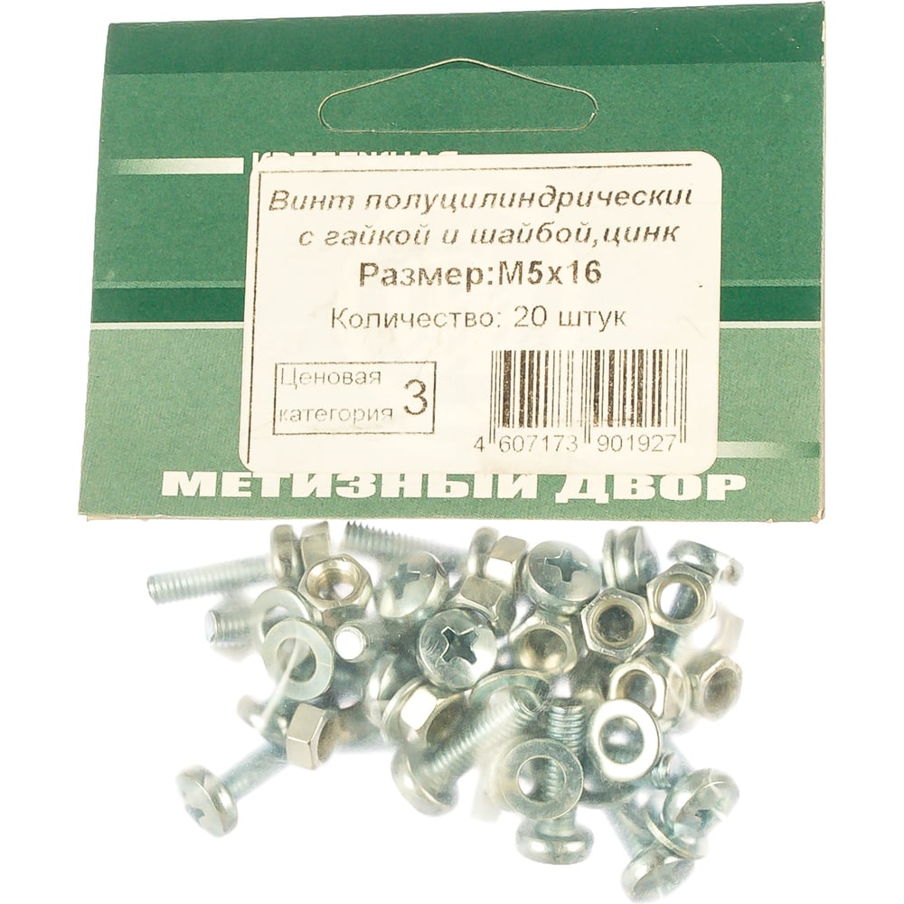 Пакет винт п/ц с гайкой и шайбой Метизный двор цинк м5х16мм 20 шт. 4607173901927