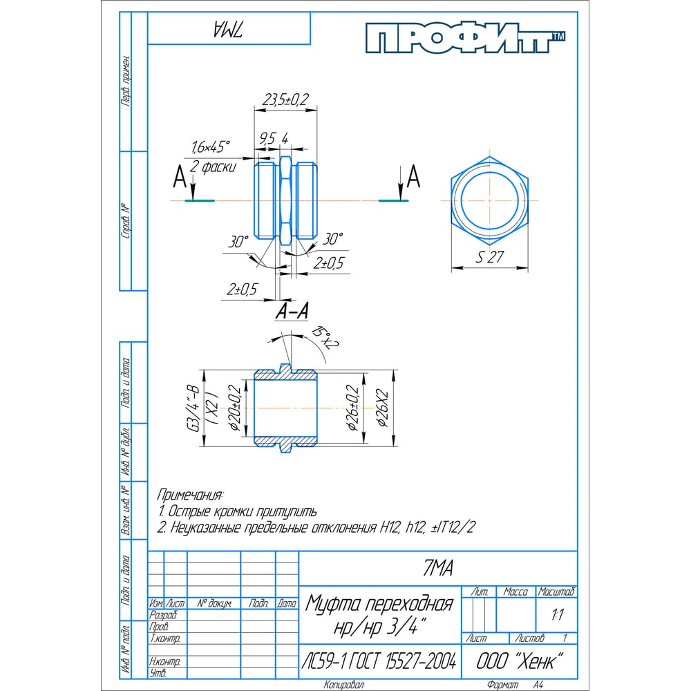 Ниппель Профитт латунь, 3/4", 10 шт 9279301