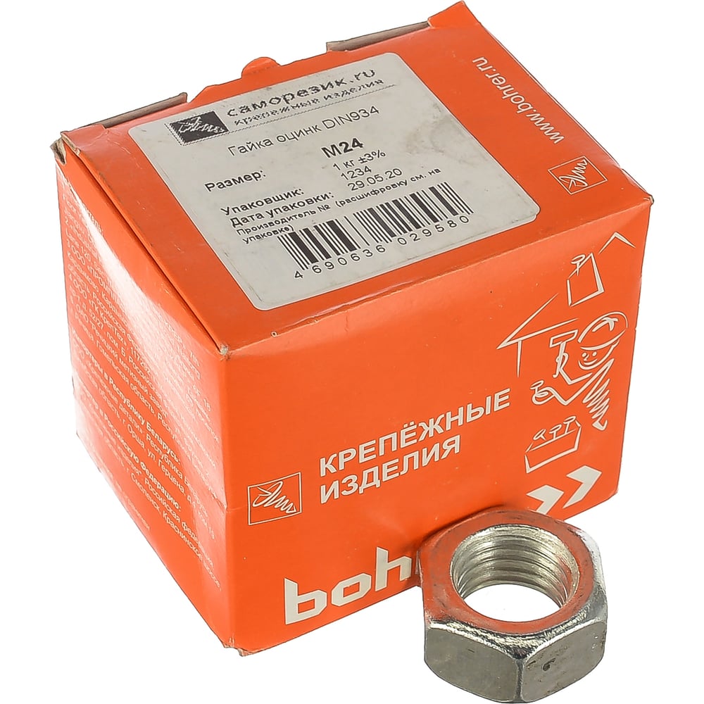 Гайка Саморезик М24 оцинк. DIN 934 1кг DIN934-М24-1
