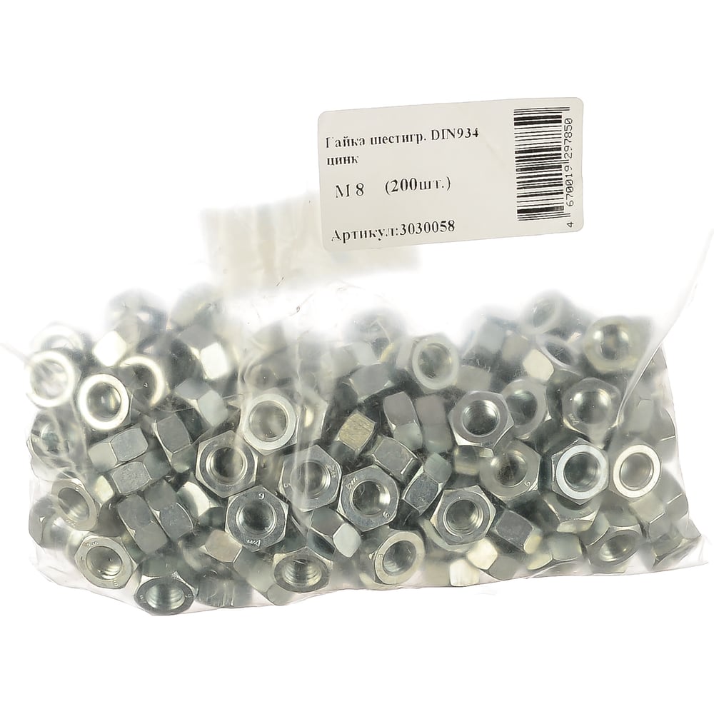 Шестигранная гайка Стройметиз DIN934 М8 цинк 200 шт. 3030058
