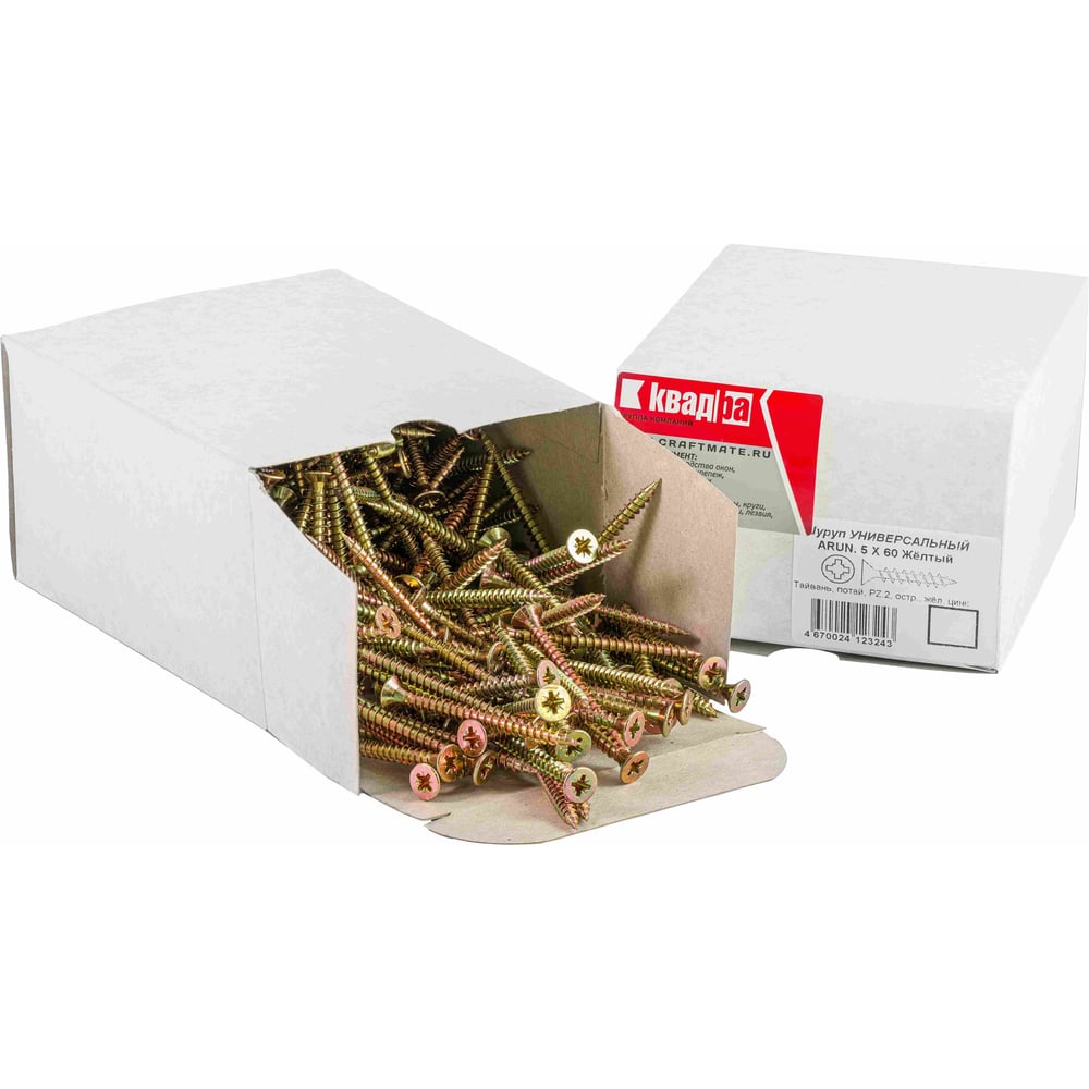 Квадра Саморез универсальный 5x60 желтый, потайная голова, цинк, кop. 50 шт. 504060002050