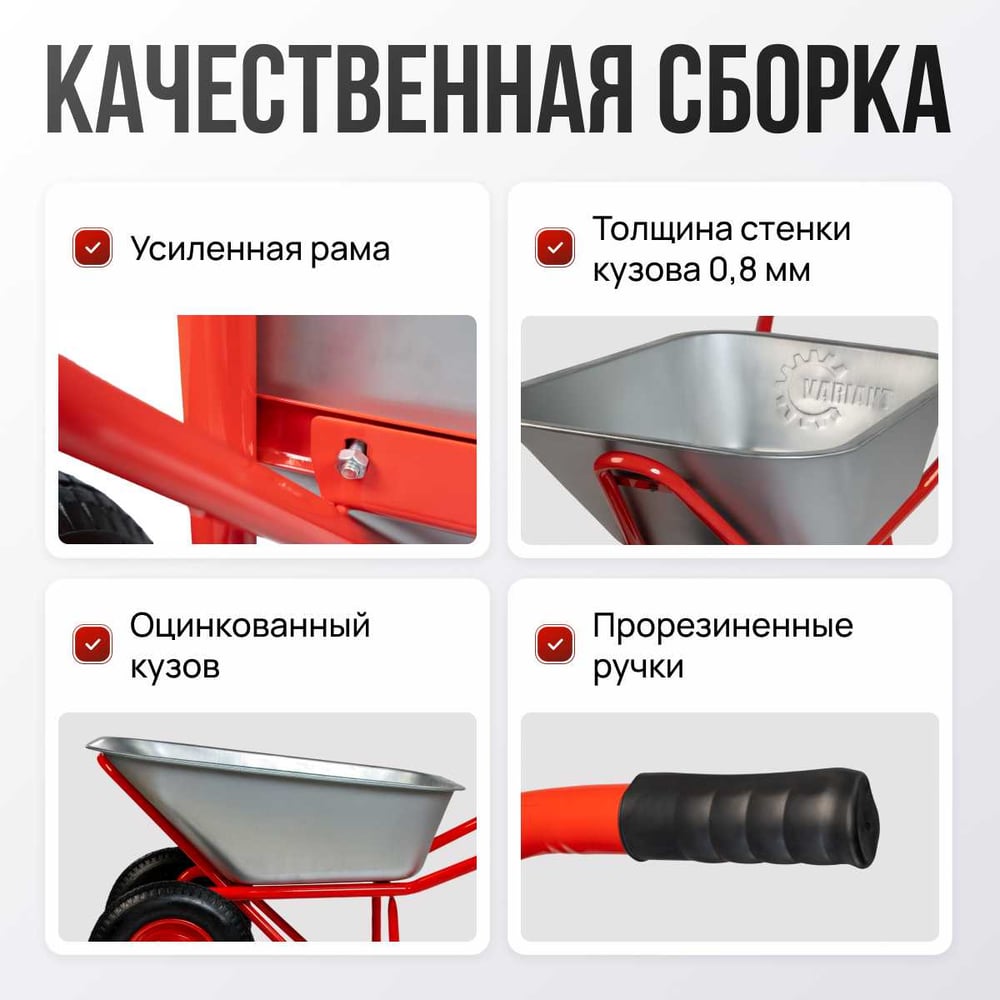 Строительная двухколесная усиленная тачка Variant 110 л, 2 колеса 4.80/4.00-8, грузоподъемность 180кг. 12110
