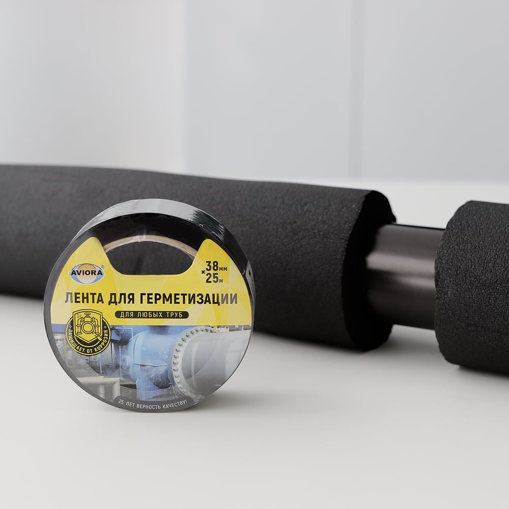 Клейкая лента для герметизации AVIORA 38 мм, 25 м, черная 302-049