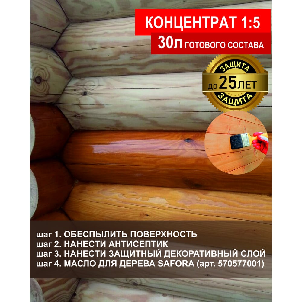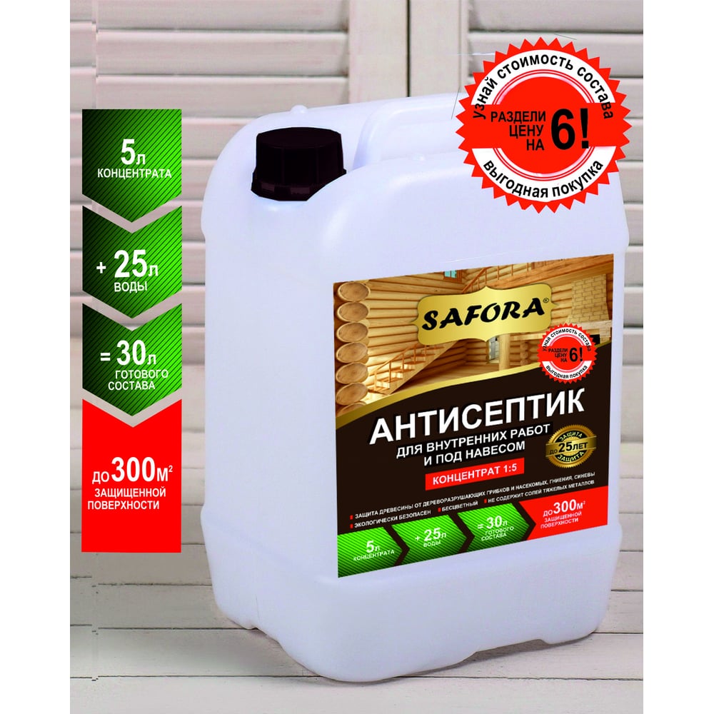 Антисептик для дерева для внутренних работ SAFORA (концентрат 1:5), 5 литров АН03