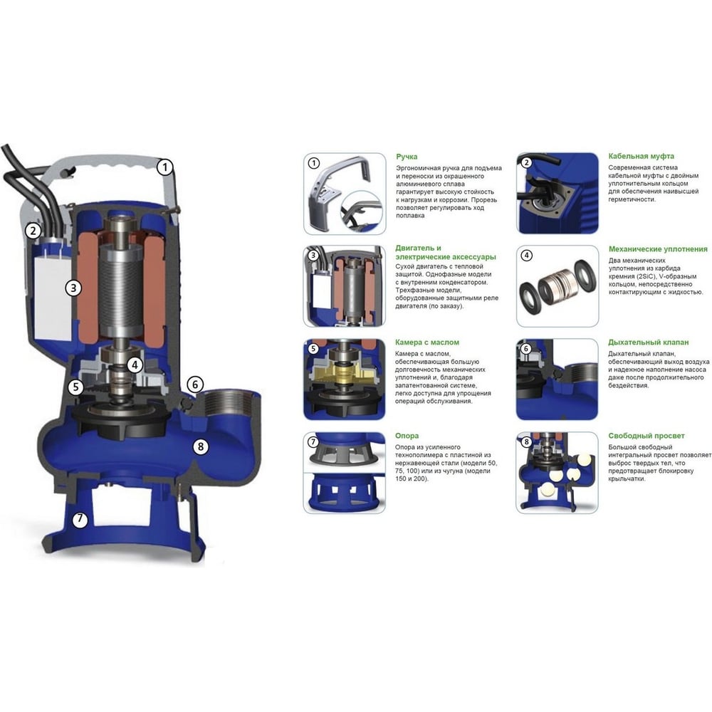 Погружной фекальный насос ZENIT DG BLUE P 200/2/G50V A1CM/50 335043