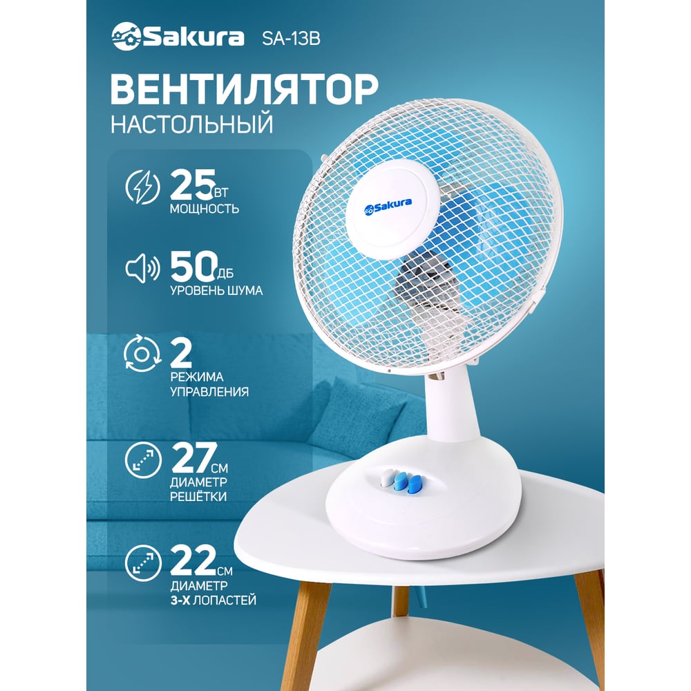 Вентилятор настольный Sakura SA-13B белый/голубой РТ-00043473