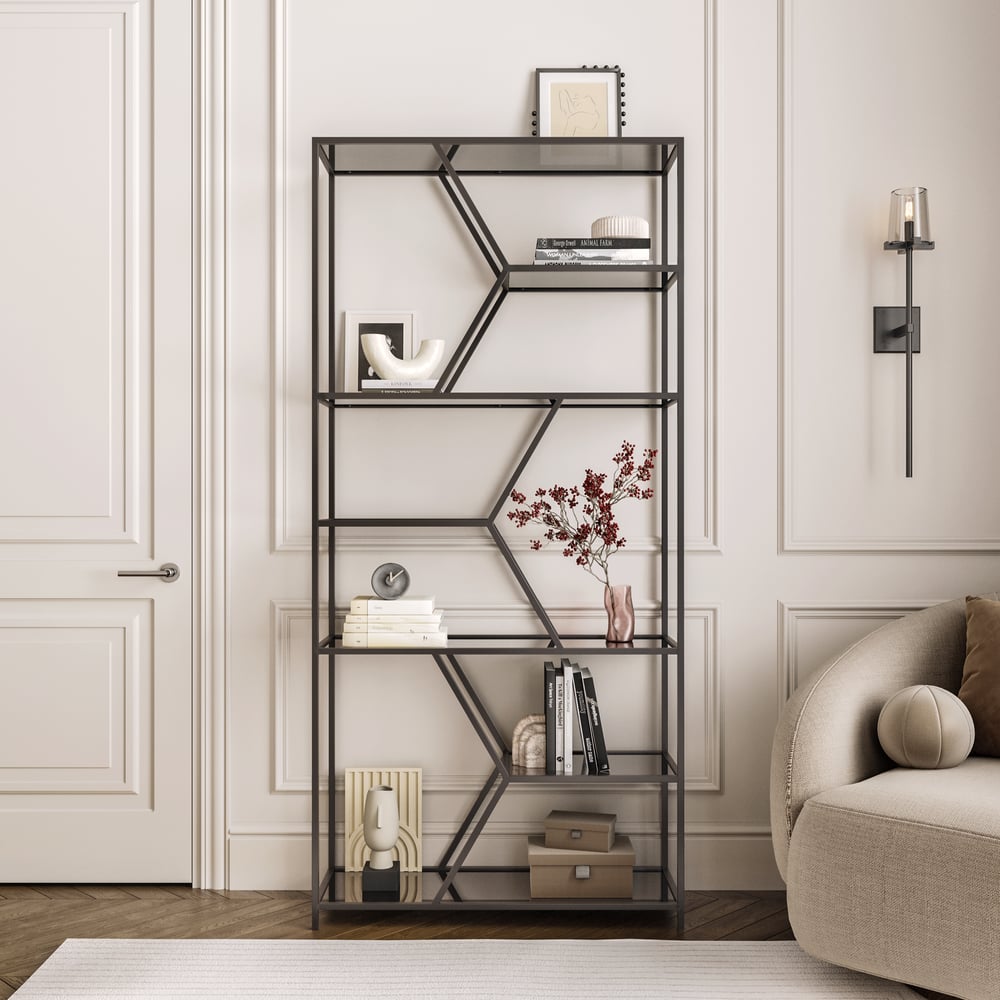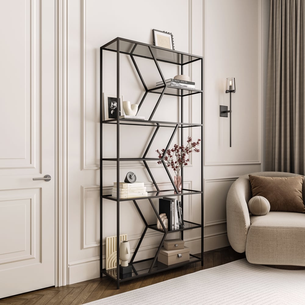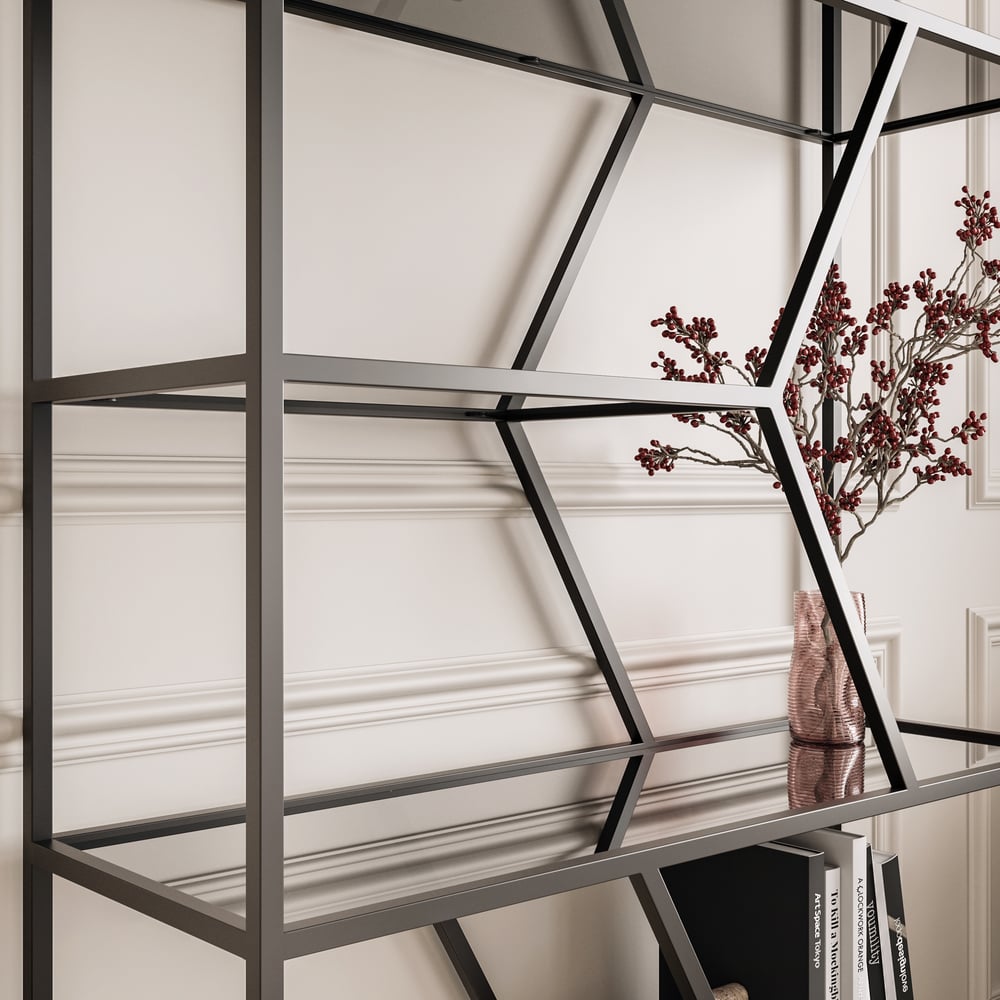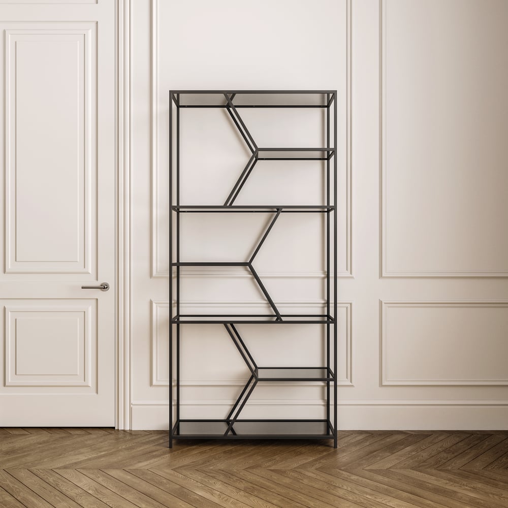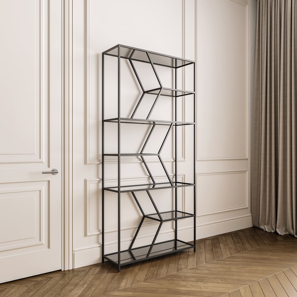 Стеллаж GreenWeen MALTA, черный каркас, полки тонированное стекло, 1920x900x300 GW-MALTA-B-G