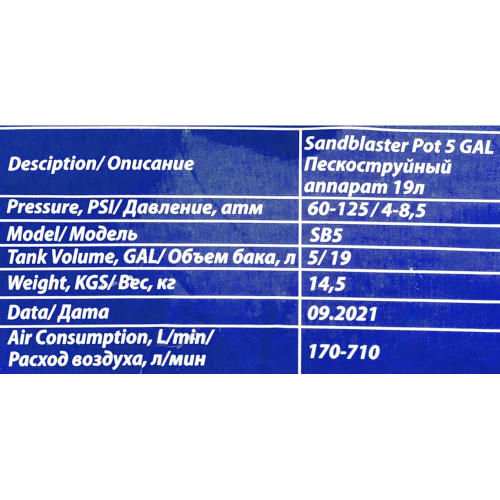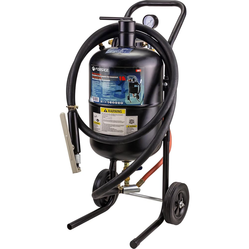 Передвижной пескоструйный аппарат напорного типа (бак 19 л, 170-566 л/мин, 4-8,5 атм) Forsage F-SB5(7394)