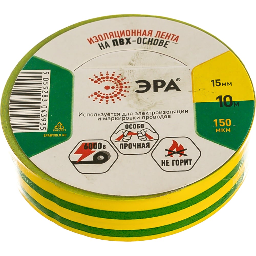 Эра ПВХ-изолента 15мм*10м желто-зеленая c0036559