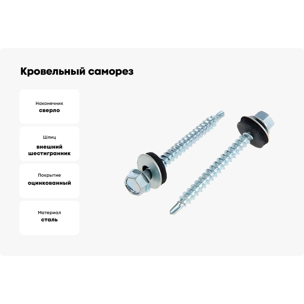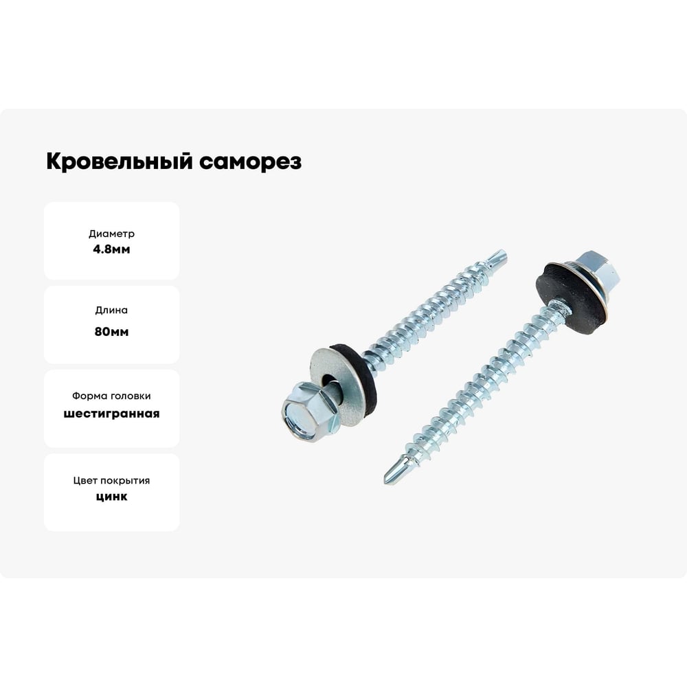Кровельный саморез Bohrer ПРОМ 4,8x80, оцинкованный, 2000 шт. SKZ-4,8х80