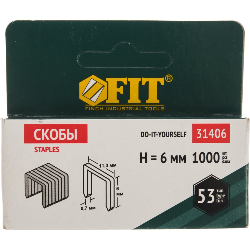 Скобы (6 мм; 1000 шт.) для мебельного степлера FIT DIY 31406