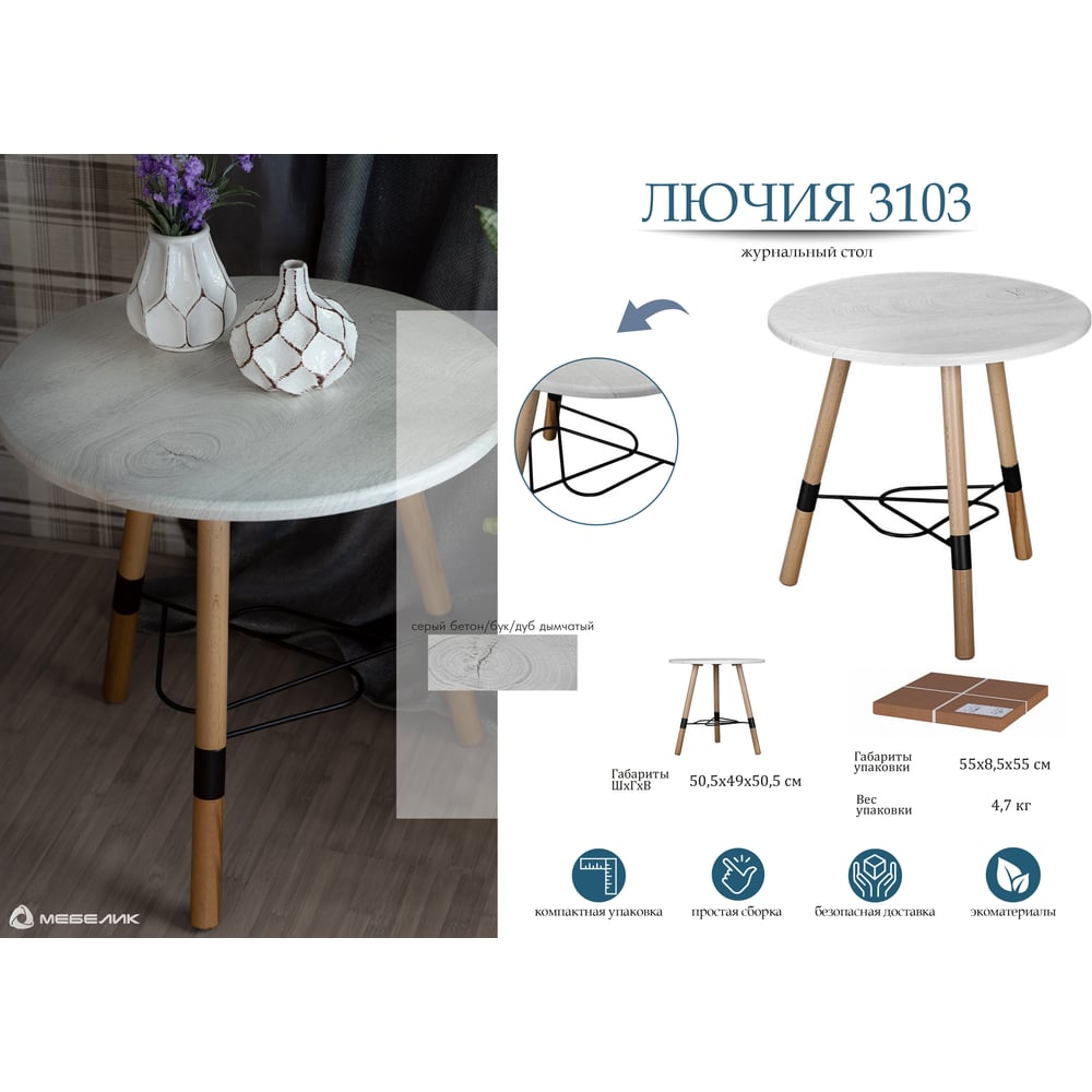 Журнальный стол Мебелик Лючия 3103 серый бетон/бук/дуб дымчатый 6486