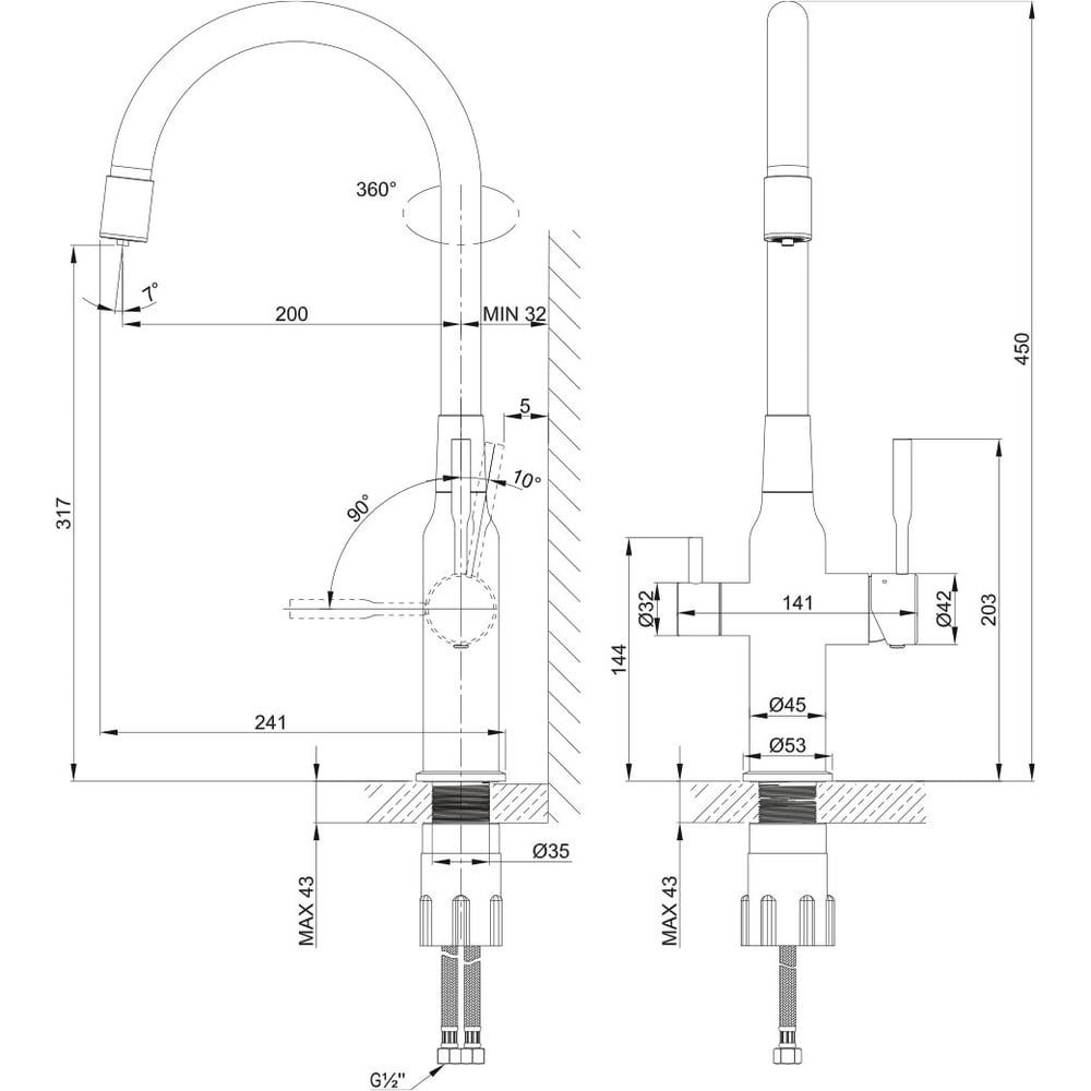 Цвет нержавеющая сталь/серый Тип установки настольный/на раковину Стиль современный Материал корпуса нержавеющая сталь Серия Expert Поворотный излив да Назначение для кухни Тип крепления на гайку Гибкий излив да Длина излива 200 мм Высота смесителя 450 мм Лейка нет Термостат нет Встраиваемый нет Подводка в комплекте гибкая Аэратор да Переключатель на фильтр да Тип смесителя однорычажный Форма излива воды традиционная Запорный клапан керамический картридж Форма смесителя округлая Выдвижной излив нет Излив есть Складной нет С щеткой нет Двойной излив есть Диаметр картриджа 35 мм Размер крепления G1/2 Направление струи под углом Диаметр отверстия в раковине 35 мм ГОСТ/DIN нет Высота излива 317 мм Мах толщина столешницы 43 мм Расположение рычага сбоку Расположение термостата без термостата