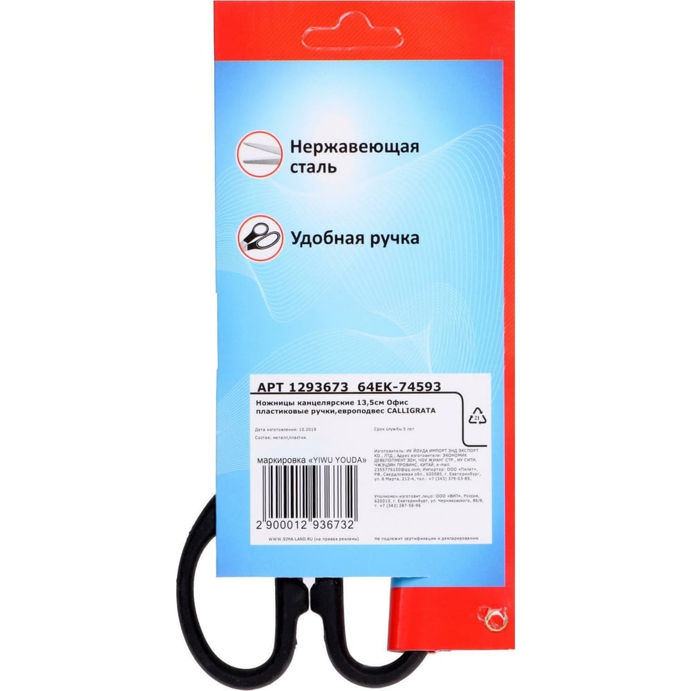 Канцелярские ножницы Calligrata Офис 1293673