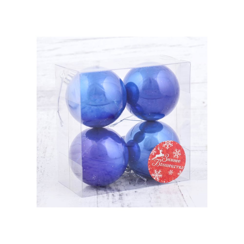 Набор пластиковых шаров Зимнее волшебство Глянец d-6 см, 4 шт синий 1009319
