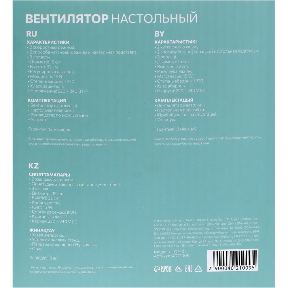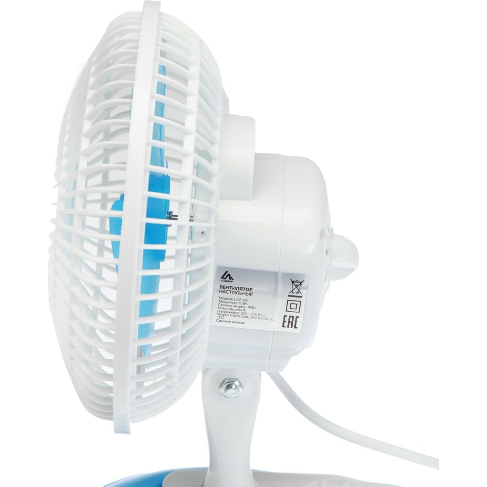 Настольный вентилятор LUAZON LOF-04, 15 Вт, 15 см, 2 режима, пластик, бело-голубой 4021009