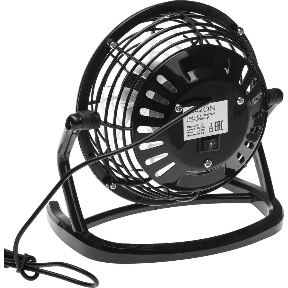 Настольный вентилятор LUAZON LOF-06, 2.5 Вт, 12 см, пластик, черный 3937504
