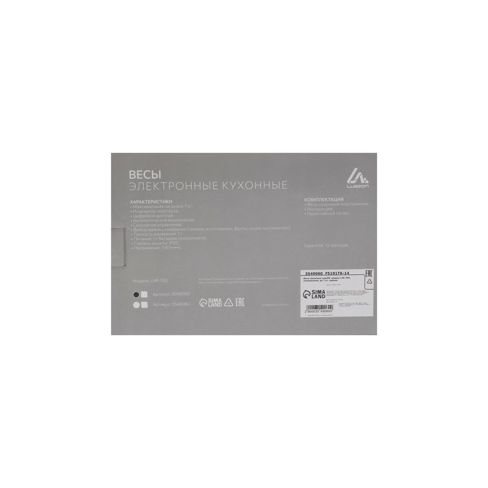 Кухонные электронные весы LUAZON LVK-702 3549060