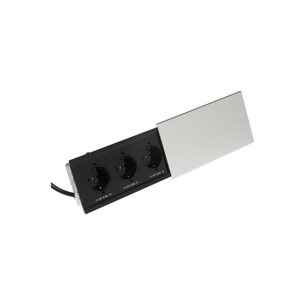 Розеточный блок в стол СИМАЛЕНД, сдвижная крышка, 10А, 3 розетки, провод 1.8 м, серебристый 7451033