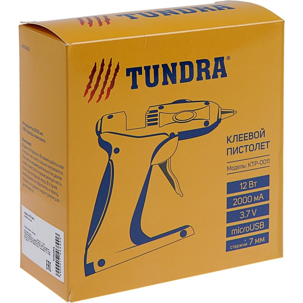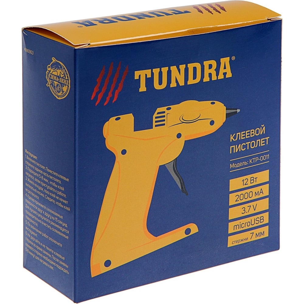 Клеевой пистолет ТУНДРА 12 Вт, аккумулятор 2000 мА, microUSB, 7 мм 4686963