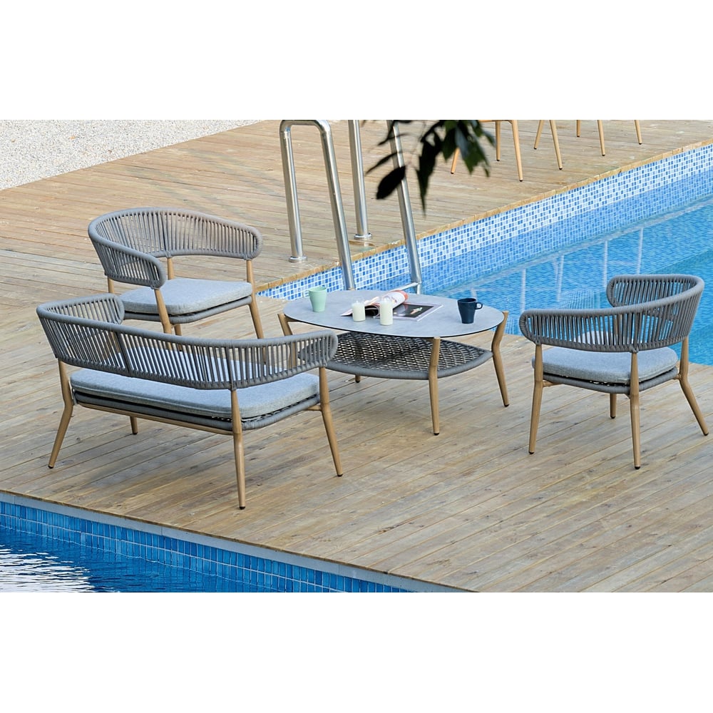 Кофейный стол садовый САМОС столешница камень, каркас алюминий имитация дерева ООО "Фотон" Konway E1169coffetable