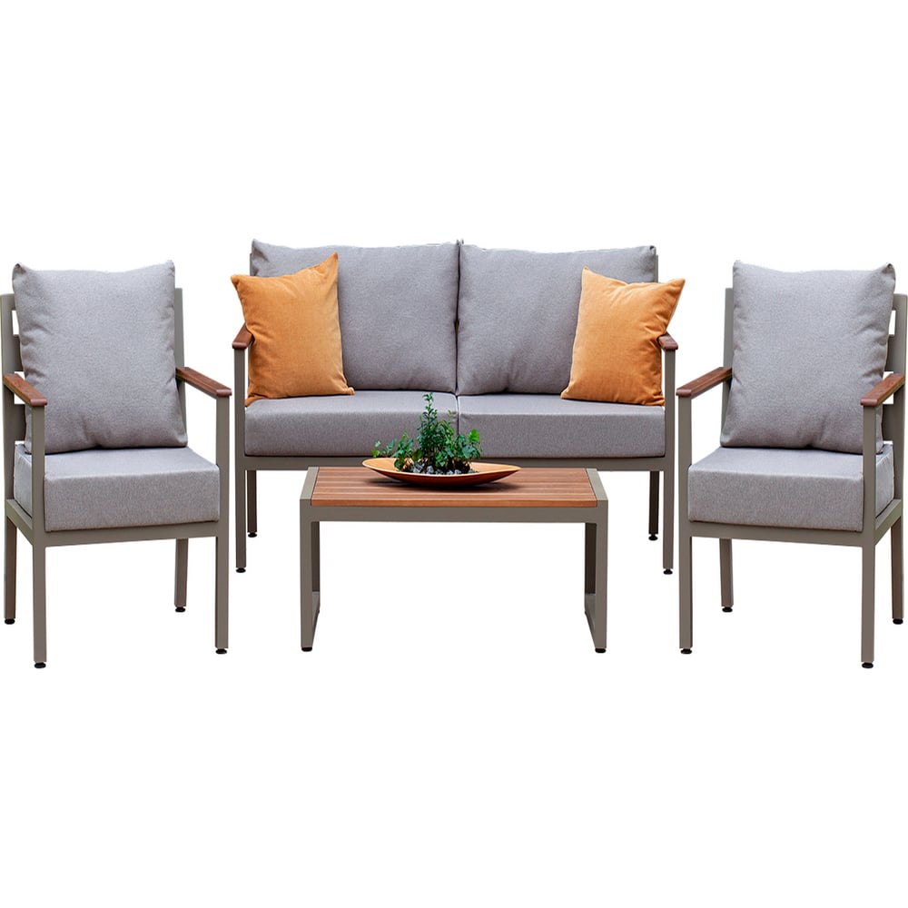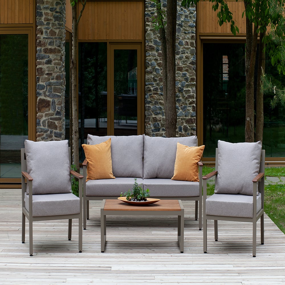 Набор садовой мебели GreenWeen SANTORINI S4, цвет PECAN, 4 предмета: диван, 2 кресла, столик GW-AL-SANT-P-S4