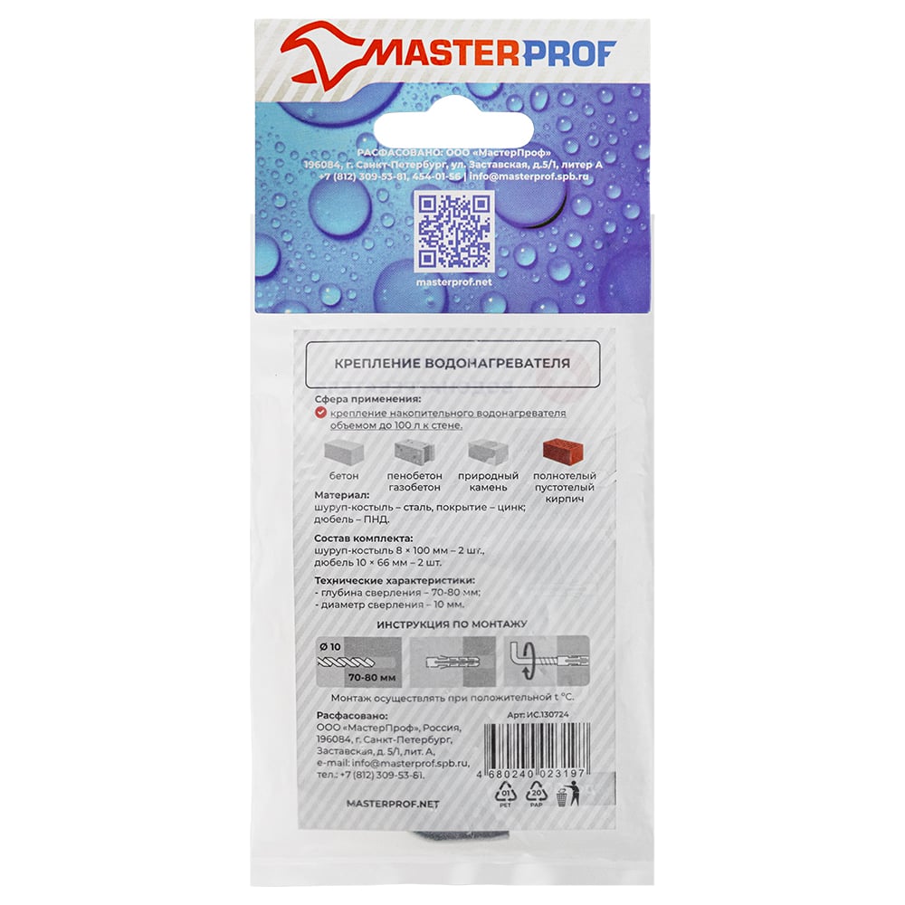 Masterprof набор для крепления водонагревателя костыль 8x100, mp ис.130724