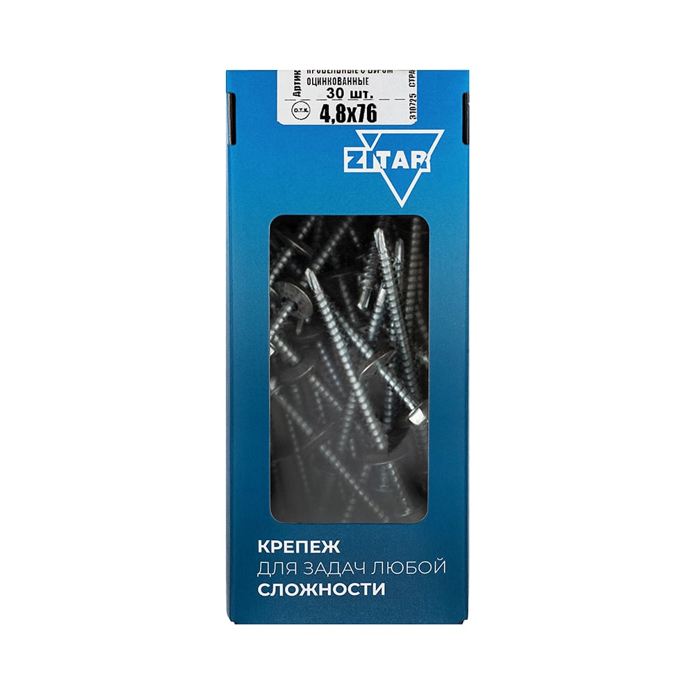 Саморез КР ZP со сверлом, 4,8x76 мм, 30 шт. в коробке с окном Zitar 124636