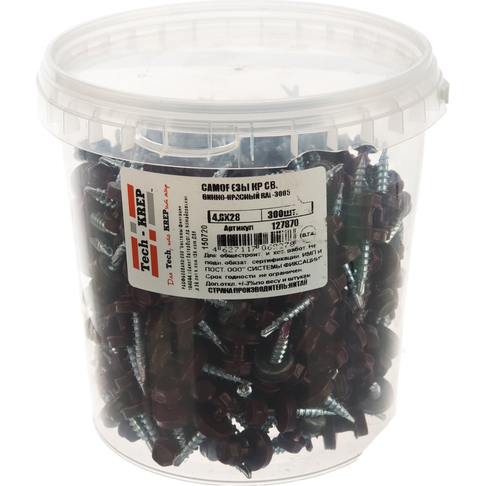 Кровельный саморез Tech-Krep КР сверло 4,8х28 RAL-3005 винно-красный 300 шт, ведро 127870