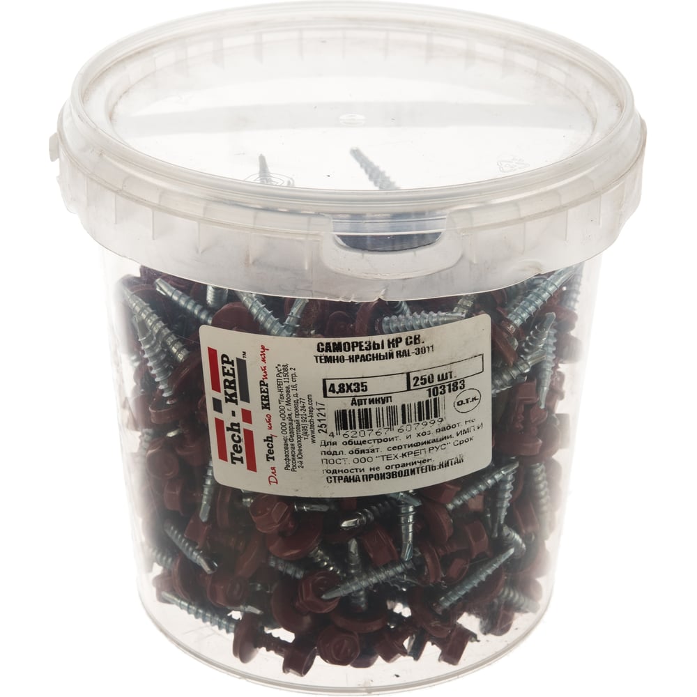 Кровельный саморез Tech-Krep КР сверло 4,8х35 RAL-3011 тёмно-красный 250 шт, ведро 103183