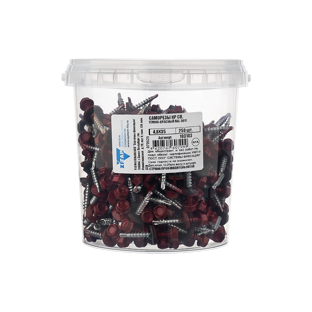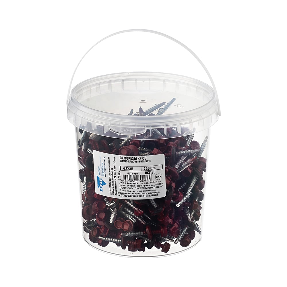 Саморез КР со сверлом 4,8x35 мм RAL-3011 темно-красный, 250 шт в ведре Zitar 103183