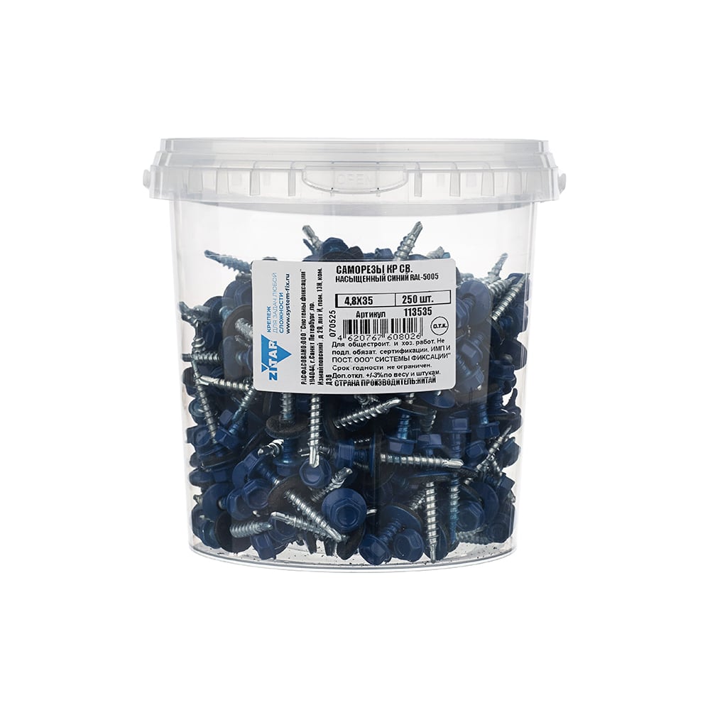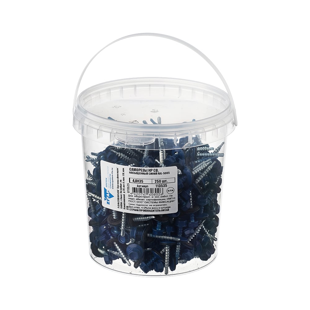 Саморез КР со сверлом 4,8x35 мм RAL-5005 насыщенный синий, 250 шт в ведре Zitar 113535