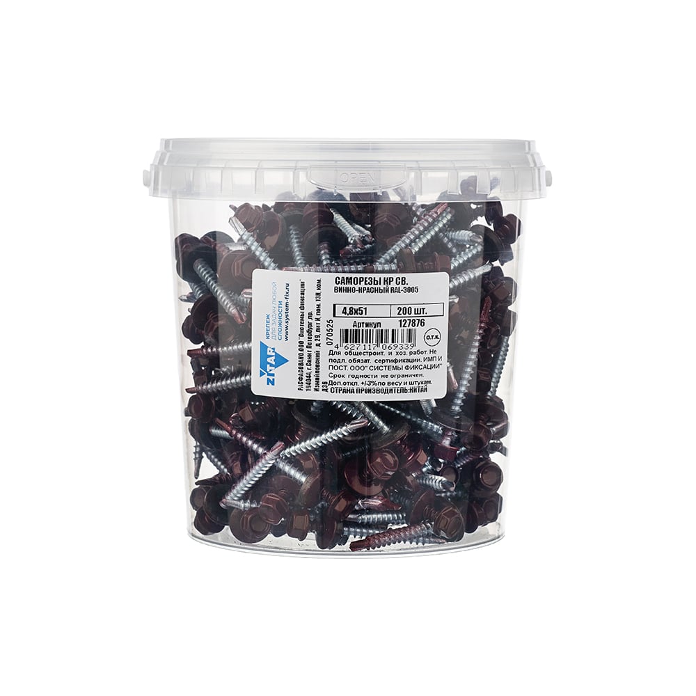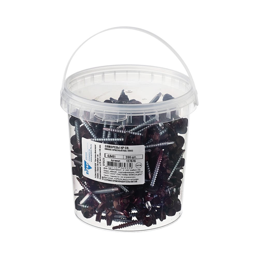 Саморез КР со сверлом 4,8x51 мм RAL-3005 винно-красный, 200 шт в ведре Zitar 127876