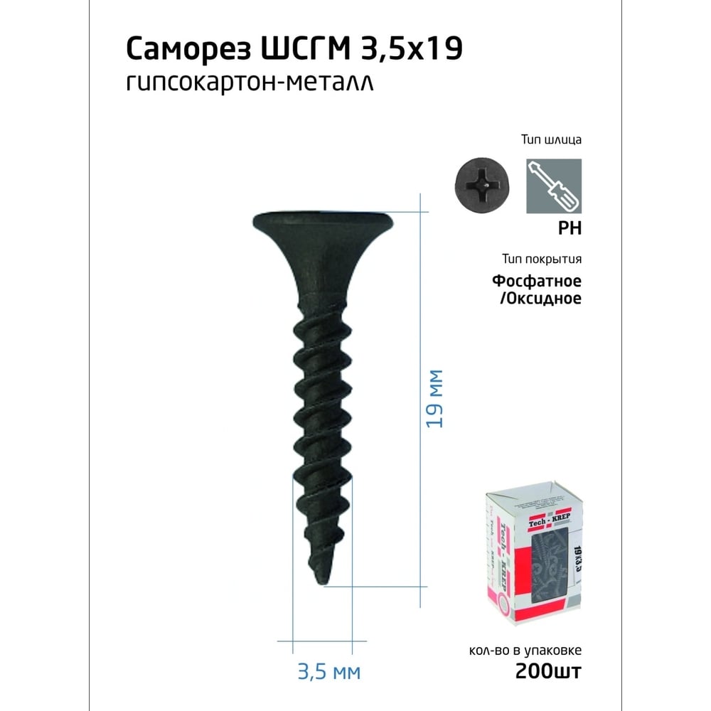 Саморез ШСГМ Tech-Krep 3,5х19 200 шт, коробка с окном 102128