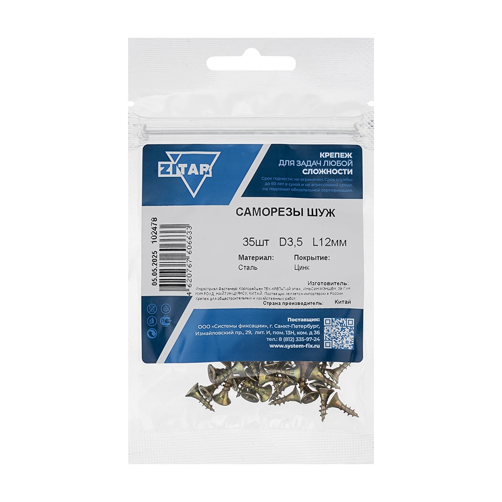 Саморез ШУж с потайной головкой 3,5x12 мм, 35 шт., пакет Zitar 102478