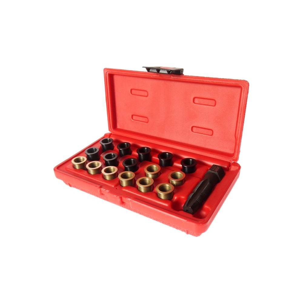 Набор инструментов для восстановления резьбы свечей зажигания (втулки M12x1.25, L=12.7 мм,19 мм, 16 штук) JTC 4314