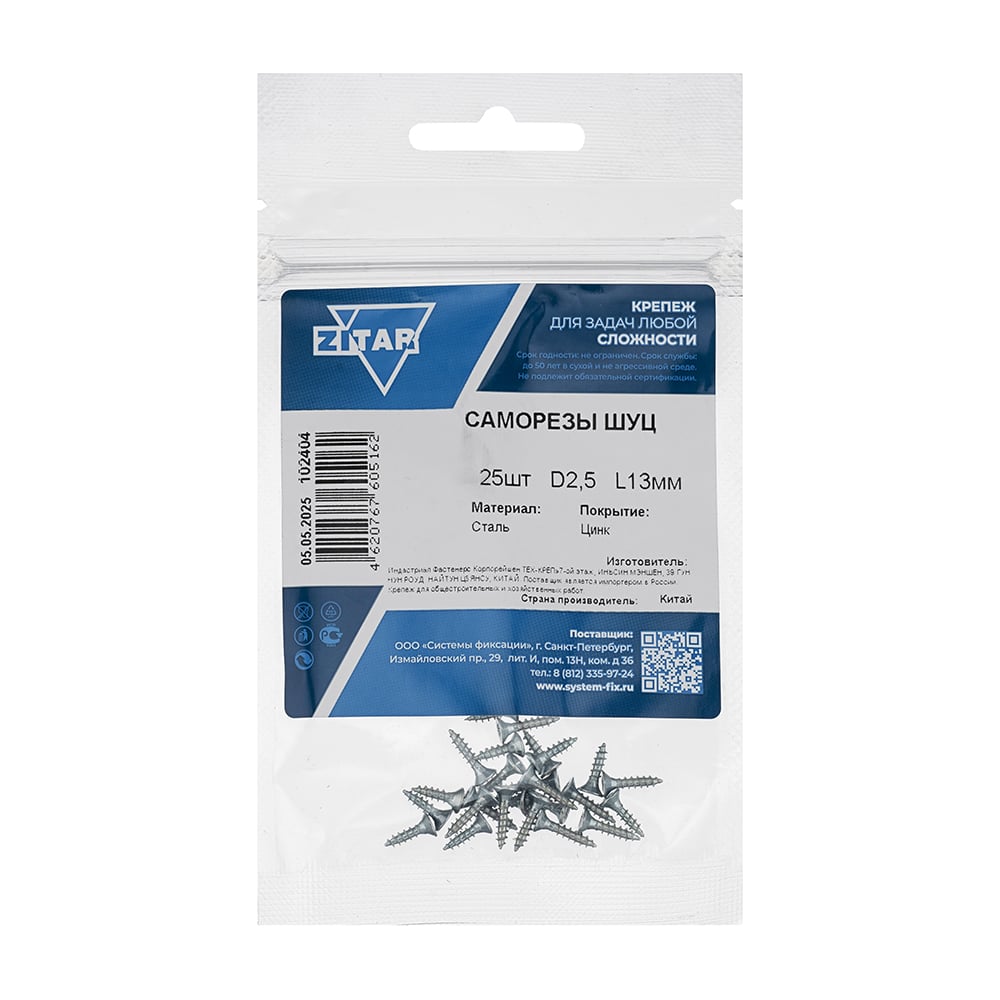 Саморез ШУц с потайной головкой, 2,5x13 мм, 25 шт., пакет Zitar 102404
