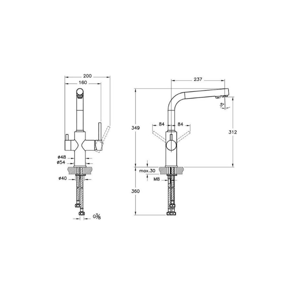 Смеситель для кухни Vitra Split с изливом для фильтрованной воды A42144EXP