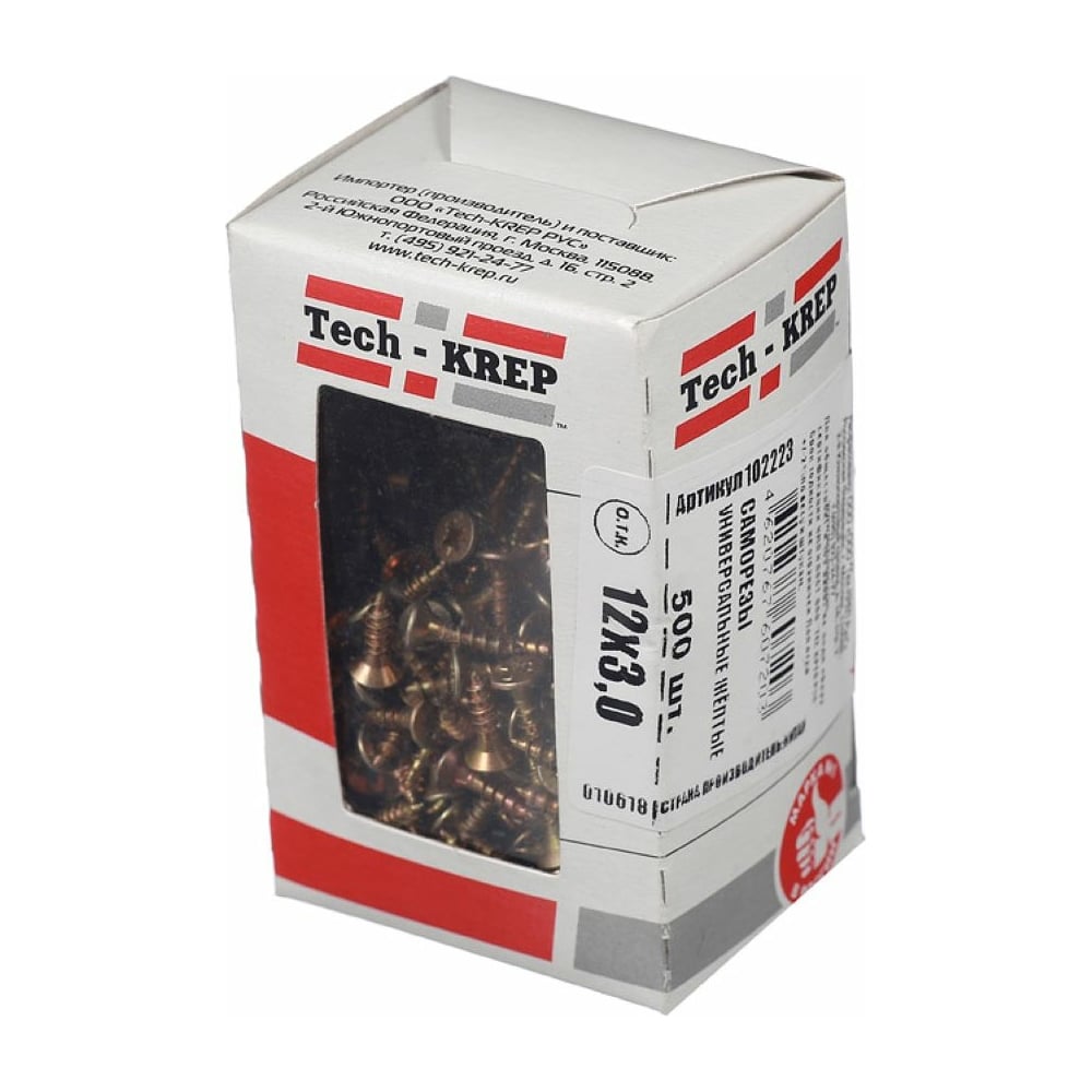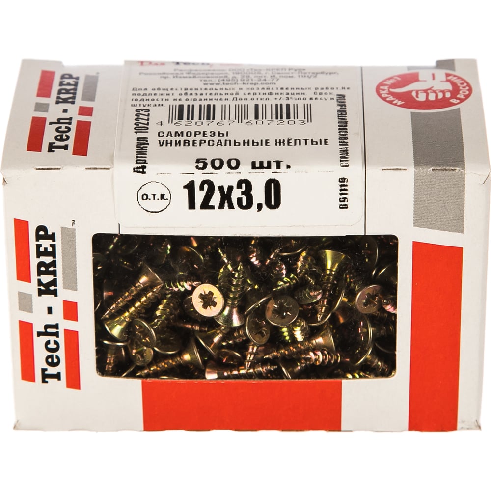 Универсальный саморез Tech-Krep 12х3,0 мм 500 шт желтый, коробка с окном 102223