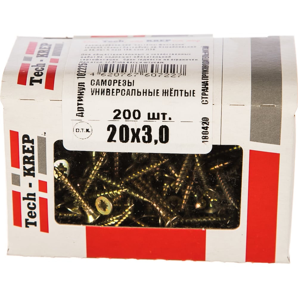 Универсальный саморез Tech-Krep 20х3,0 мм 200 шт желтый, коробка с окном 102225